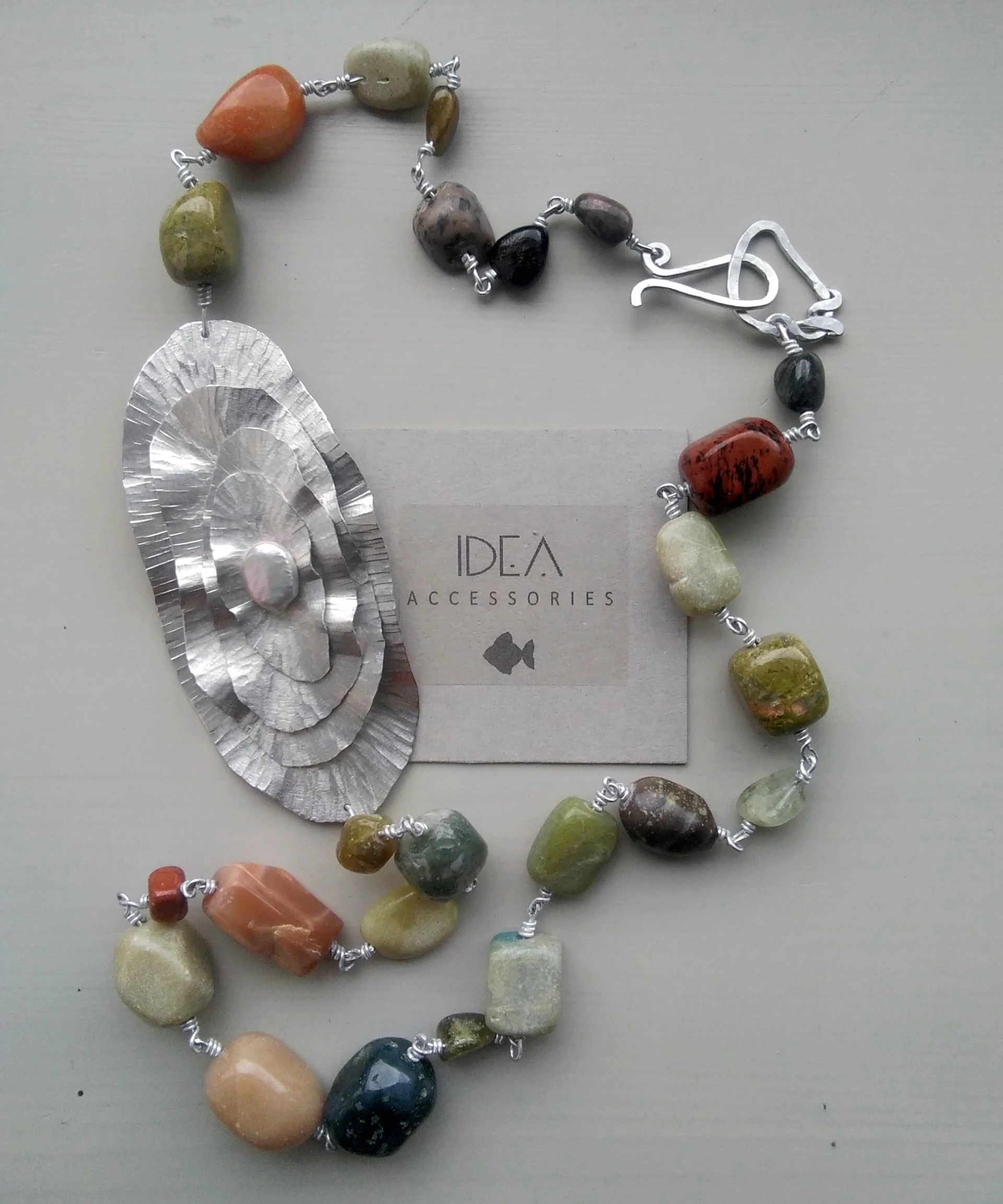 Oltre a dipingere, amo creare gioielli artigianali in vari metalli e pietre naturali. Sono oggetti semplici, essenziali, pensati per essere indossati ogni giorno.