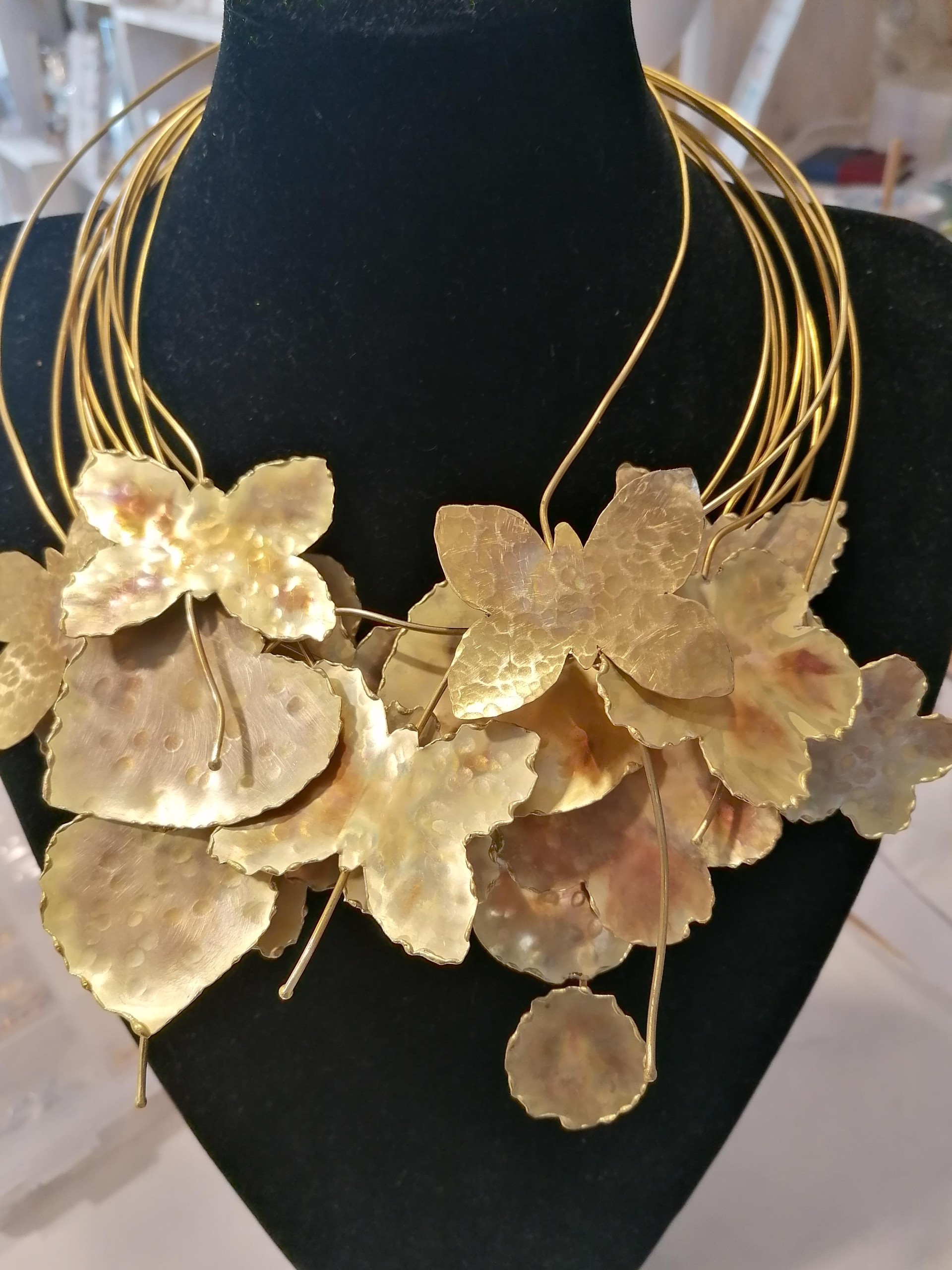 I miei gioielli sono ispirati agli stessi elementi che amo dipingere: radici, foglie, luci del lago, vibrazioni dell’acqua. Ogni oggetto è fatto a mano, nel mio laboratorio di Manerba del Garda, e non ne esistono due identici.